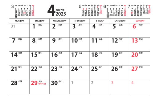 お好きな順に並び替えができる、組み替えタイプの便利な3か月カレンダー