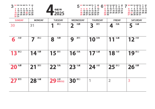 お好きな順に並び替えができる、組み替えタイプの便利な3か月カレンダー