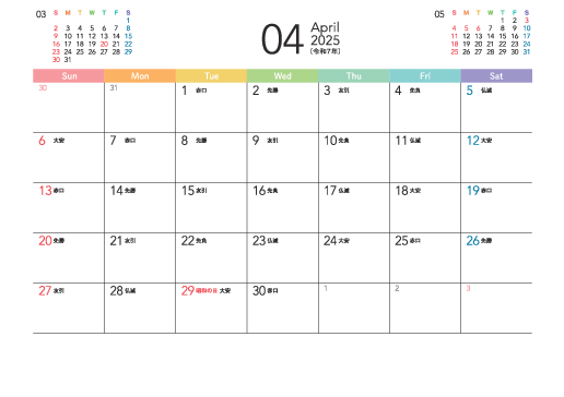 Web上で名入れ カラコレ [DN-17R] 日曜始まり 六曜あり