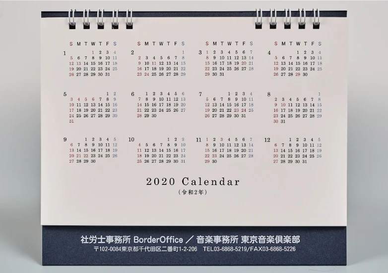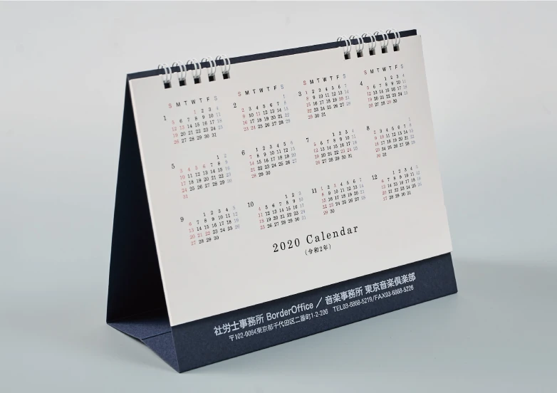 カラー台紙に名入れするシンプルでおしゃれなカレンダー