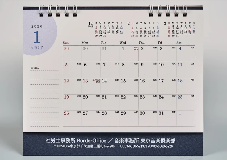3カ月を一覧できる便利なカレンダーをお客様オリジナルのデータでお作りいただけます